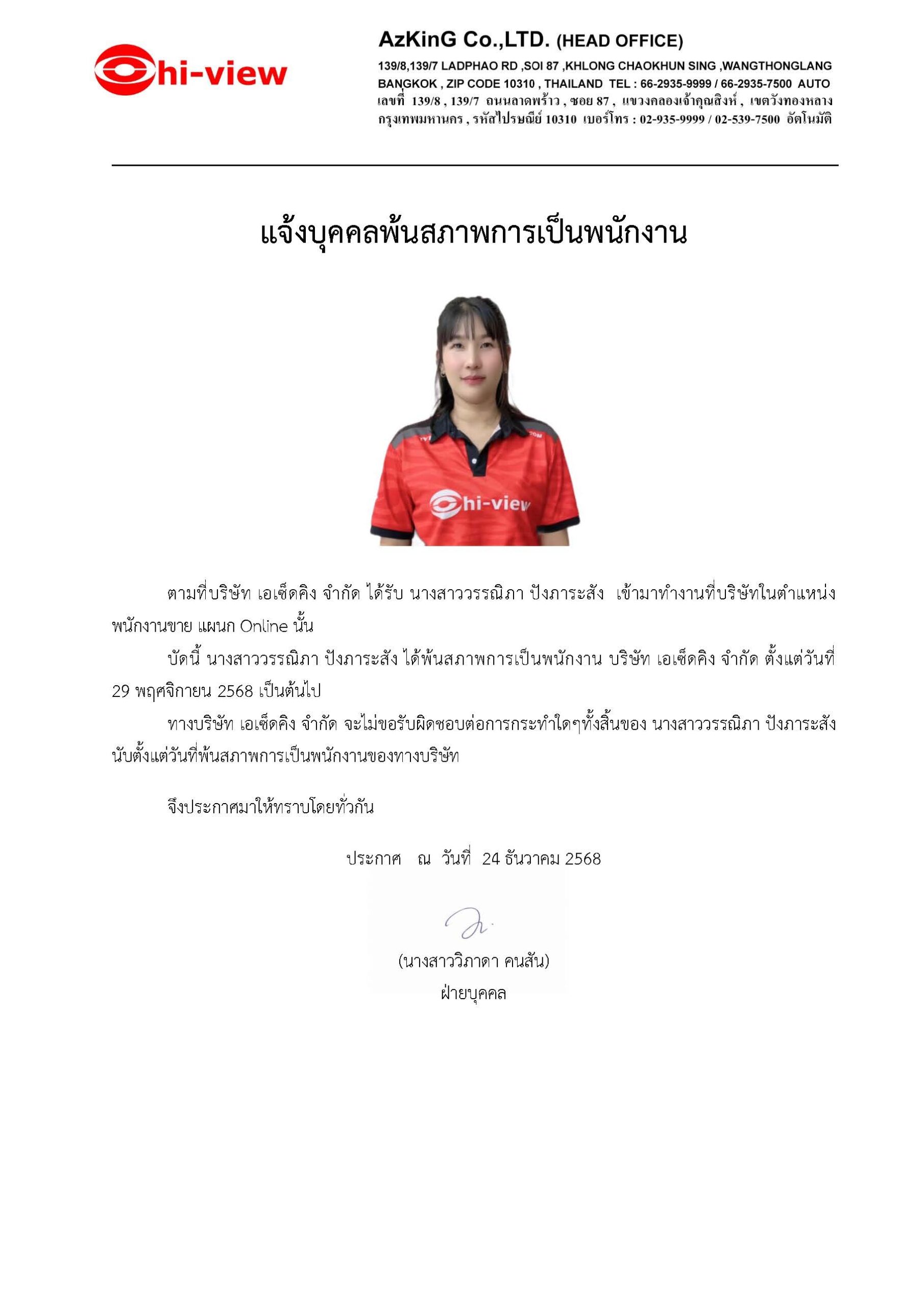 FacebookFacebookXTwitterLINELine การกระทําใดของบุคคลดังกล่าวทางบริษัทฯ จะไม่รับผิดชอบใดๆ ทั้งสิ้นนับตั้งแต่บัดนี้เป็นต้นไป จึงเรียนมาเพื่อทราบเพื่อที่จะได้ไม่เกิดความสับสนว่าบุคคลดังกล่าวนั้นมีส่วนเกี่ยวข้องใดๆกับการบริการ การขายหรือการให้คําปรึกษาใดๆของบริษัทฯ FacebookFacebookXTwitterLINELine แจ้งบุคคลพ้นสภาพงาน03 แจ้งบุคคลพ้นสภาพงาน05