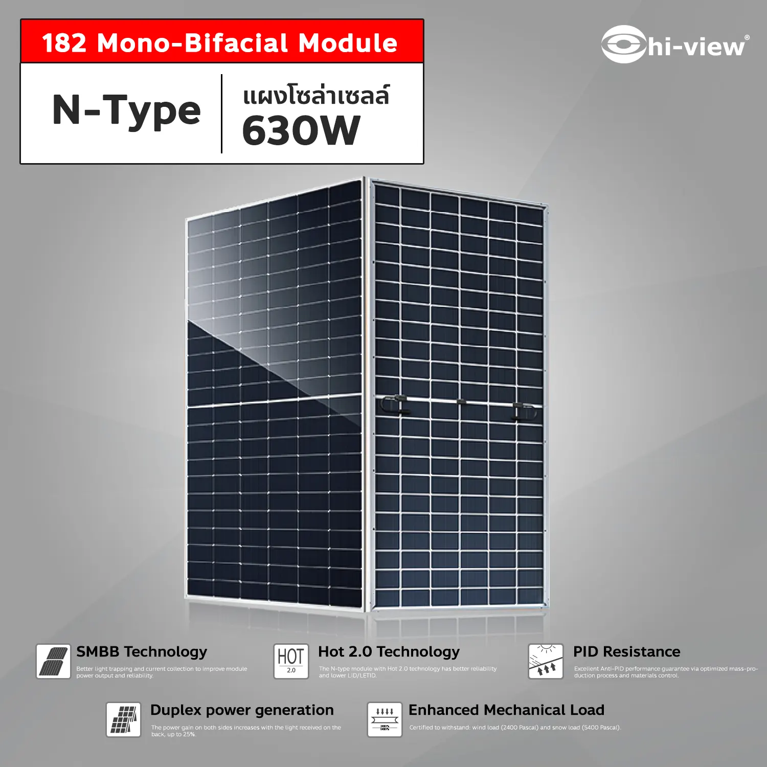 • Solar panel 630W mono half-cell bifacial module N-type module